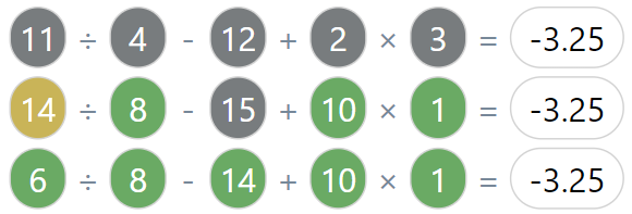 - Grey = Number not present in equation